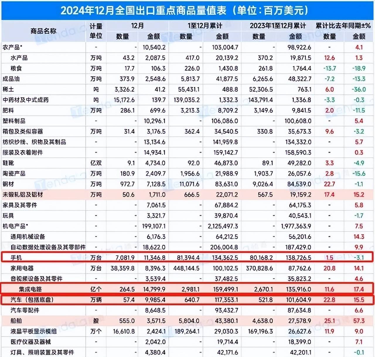2024年全年数据出来后,大师都愣了下,海关总署间接把集成电出口金额摆到1595亿美元,这数字一折算人平易近币,大要1。135万亿到1。2万亿的样子,间接把手机的1343亿美元和汽车的1173亿美元甩正在后面,坐稳了出口商品金额头把交椅。以前大师一提中国出口,想到的都是手机、衣服、汽车这些,现正在芯片竟然冲到第一,这变化来得太快了点。
