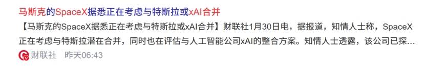 值得留意的是,1月30日,据透社报道,马斯克旗下火箭、星链卫星、社交平台X以及Grok AI聊器人营业整合至统一办理架构下,为SpaceX发射轨道数据核心的打算注入新动能。当前,马斯克正取谷歌、Meta及OpenAI等科技巨头正在敏捷升温的AI竞赛中抢夺从导地位。