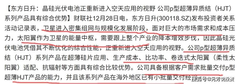 目前正在太空光伏手艺线将呈现三阶段演进:短期由砷化镓电池从导高价值航天场景,近五年内HJT手艺逐渐渗入低轨卫星使命,手艺迭代将持续沉塑行业合作款式。正在市场规模方面,要远低于地面光伏。按照中信建投、国金证券等机构预测,2030年全球太空光伏市场或达5000亿至10000亿美元的区间。因而,当前光伏公司将来无望进入马克思太空光伏供应链无疑将是最大的受益者,业绩无望送来实正的反转。那么,哪些光伏财产链企业无望进入马斯克太空光伏的供应链呢?颠末深度梳理和挖掘,这些公司具备进入供应链的焦点劣势。现正在梳理出来供大师参考。出格声明:本内容严酷限制于学术研究、研讨范围利用,不形成、亦不现含任何投资、投资指导及投资许诺,请勿做为投资根据。焦点亮点:公司正在太阳能丝网印刷设备市占率全球第一,HJT电池设备龙头,实现了HJT电池整线设备的初次出口,加码半导体及显示面板设备结构SpaceX太空光伏供应商:市场传说风闻SpaceX目前取迈为的HJT设备订单根基敲定,金额约5亿美元,对应约7GW异质结年产能。公司做为HJT电池设备龙头,产物是完全具备进入到SpaceX太空光伏供应链的劣势。焦点亮点:公司是全球TOPCon电池龙头,N型电池出货量排名全球第一,2025年上半年,N型电池产能已达40GW/年。SpaceX太空光伏供应商:通过计谋投资尚翼光电结构钙钛矿/晶硅叠层电池手艺,尝试室转换效率冲破33。53%,光谱操纵率提拔50%。无望成为SpaceX钙钛矿电池潜正在供应商。焦点亮点:电气机械和器材制制业中光伏设备及元器件制制范畴的全球领先企业,光伏组件出货量多年位列全球前十,异质结电池手艺处于行业领先地位,电池片转换效率冲破26。60%,组件转换效率冲破24。70%。paceX太空光伏供应商:公司p型超薄异质结产物已小批量交付欧洲及客户,适配卷迭式太阳翼,具备柔性、抗辐射劣势。做为焦点供应商,无望成为SpaceX钙钛矿电池潜正在供应商。