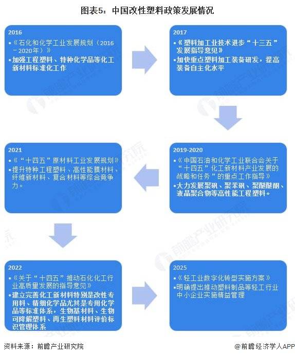 近年来,国度通过出台一系列政策搀扶我国改性塑料行业的成长。2010年国务院发布《关于加速培育和成长计谋性新兴财产的决定》,将以改性塑料为代表的高机能复合材料上升为国度计谋高度。2018年《计谋性新兴财产分类(2018)》中将改性塑料行业划分正在需沉点成长行业中。同时,一系列废塑料进出口政策、限塑令环保政策等,也利好我国改性塑料行业的成长。相关行业政策具体如下。
