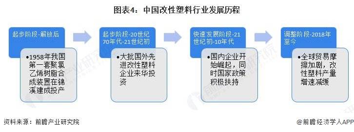 进入21世纪,我国制制业成长敏捷,此中汽车及家电产物快速普及,跟着全球节能环保认识的不竭加强,轻薄化标的目的成长,塑料成品对金属等材料替代效应较着。同时,跟着国内航天、高铁、新能源等财产敏捷兴起所带来的新材料需求的不竭,以及国内本钱市场的持续成长,国内部门改性塑料企业快速成长,规模敏捷扩大,手艺不竭提拔,正在配方设想方面具备较强的手艺能力,部门改性塑料产物机能曾经达到国际先辈程度,并逐渐使用于高端范畴,帮推我国成长成为世界塑料大国。中国改性塑料行业成长过程如下。